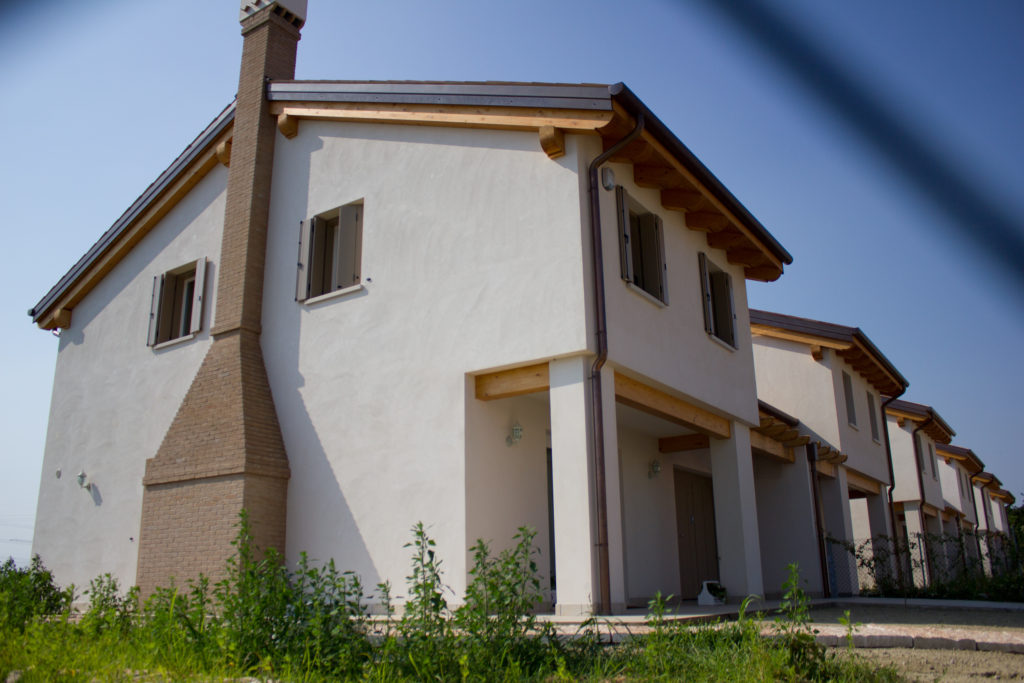 Bivilla bianca con canna fumaria in mattoni esterna